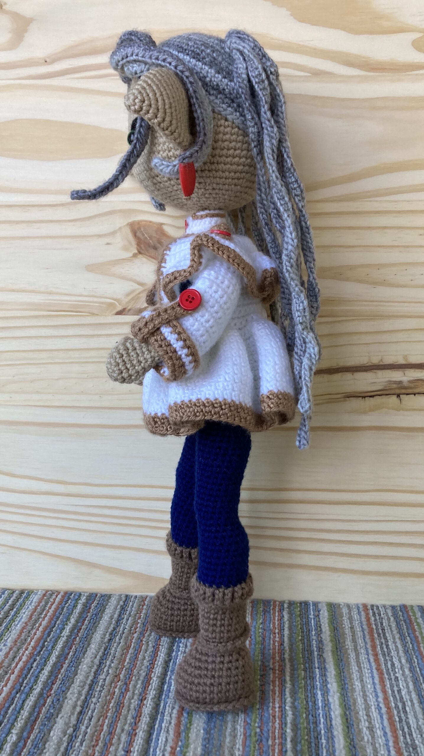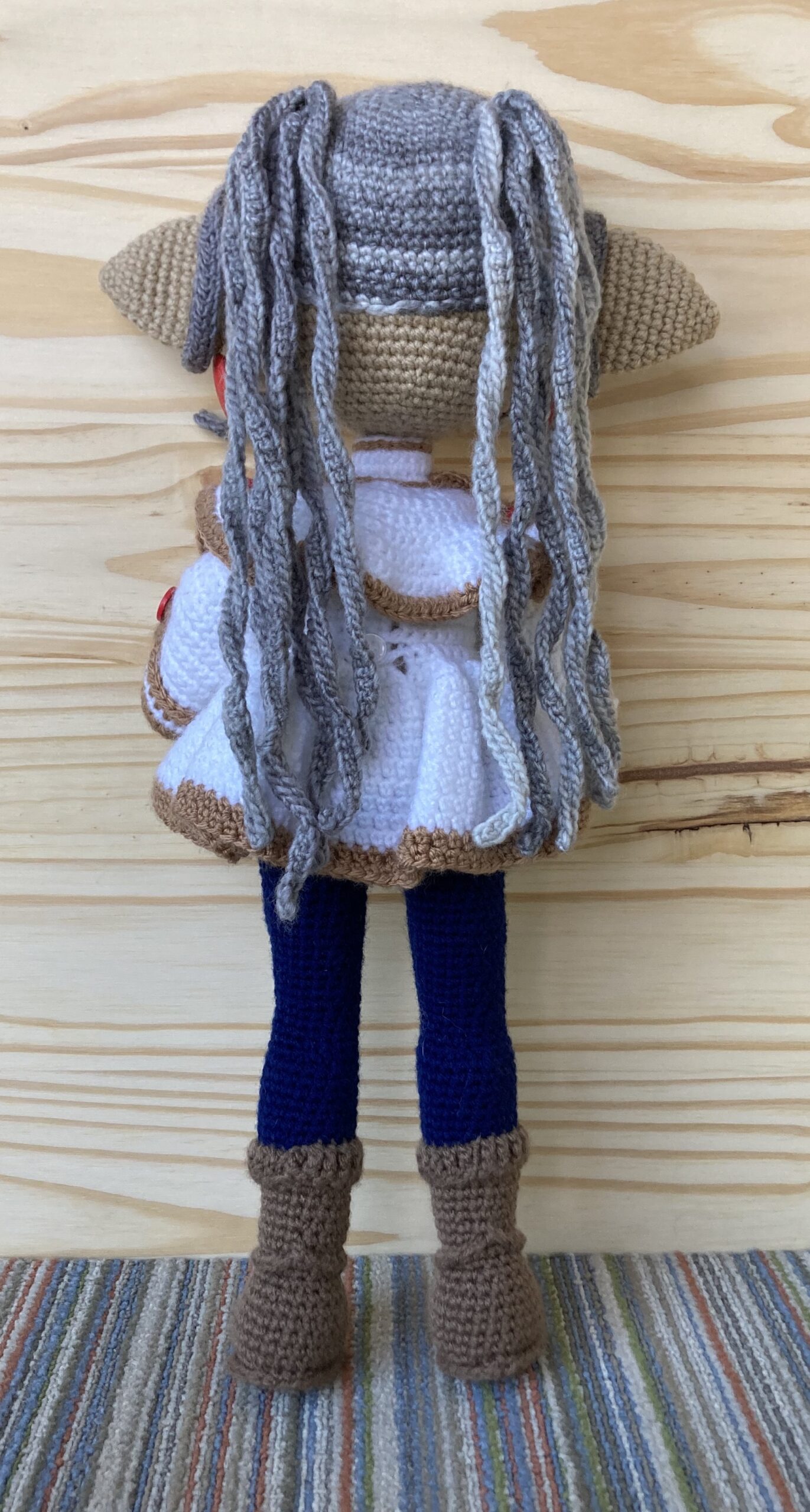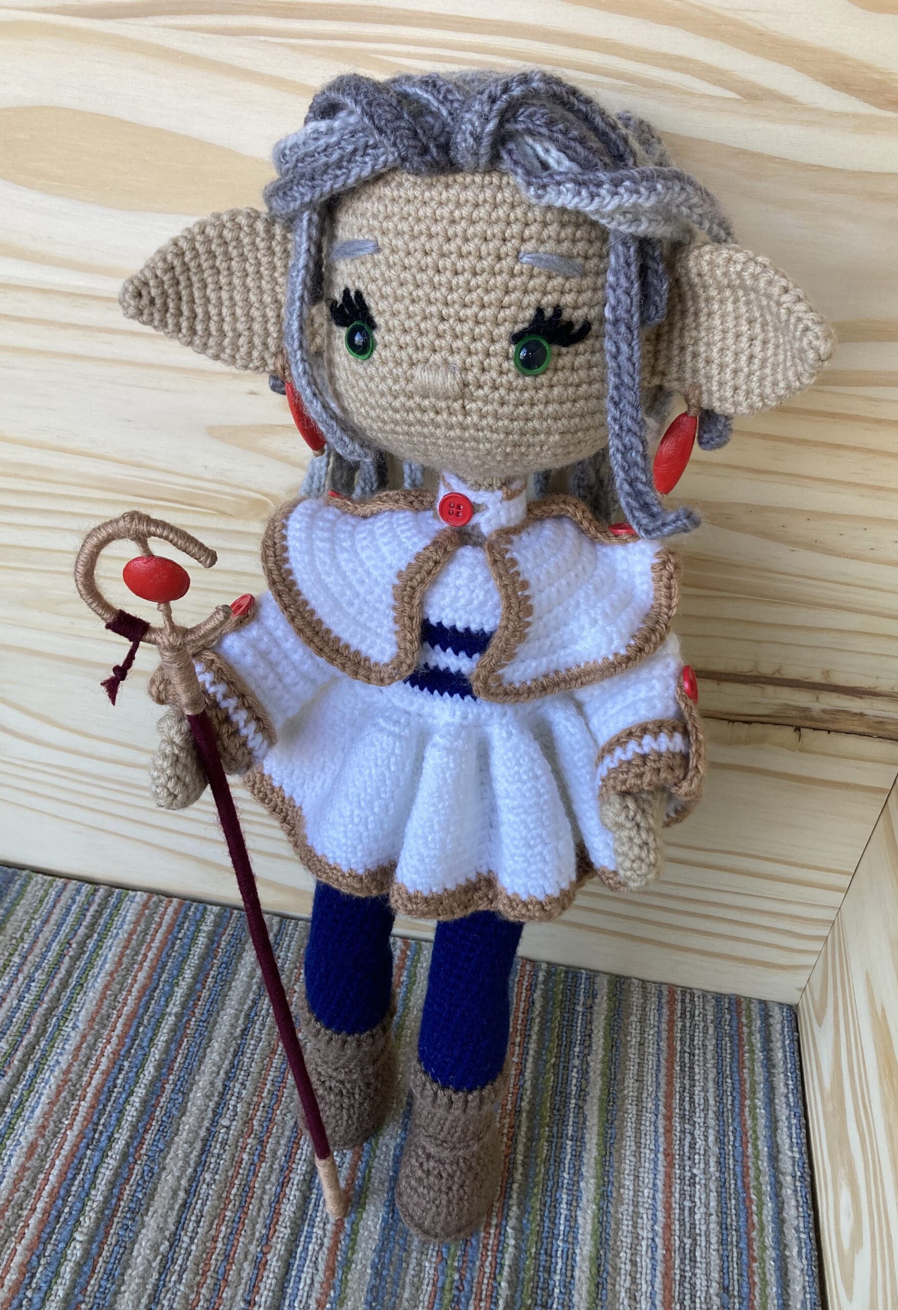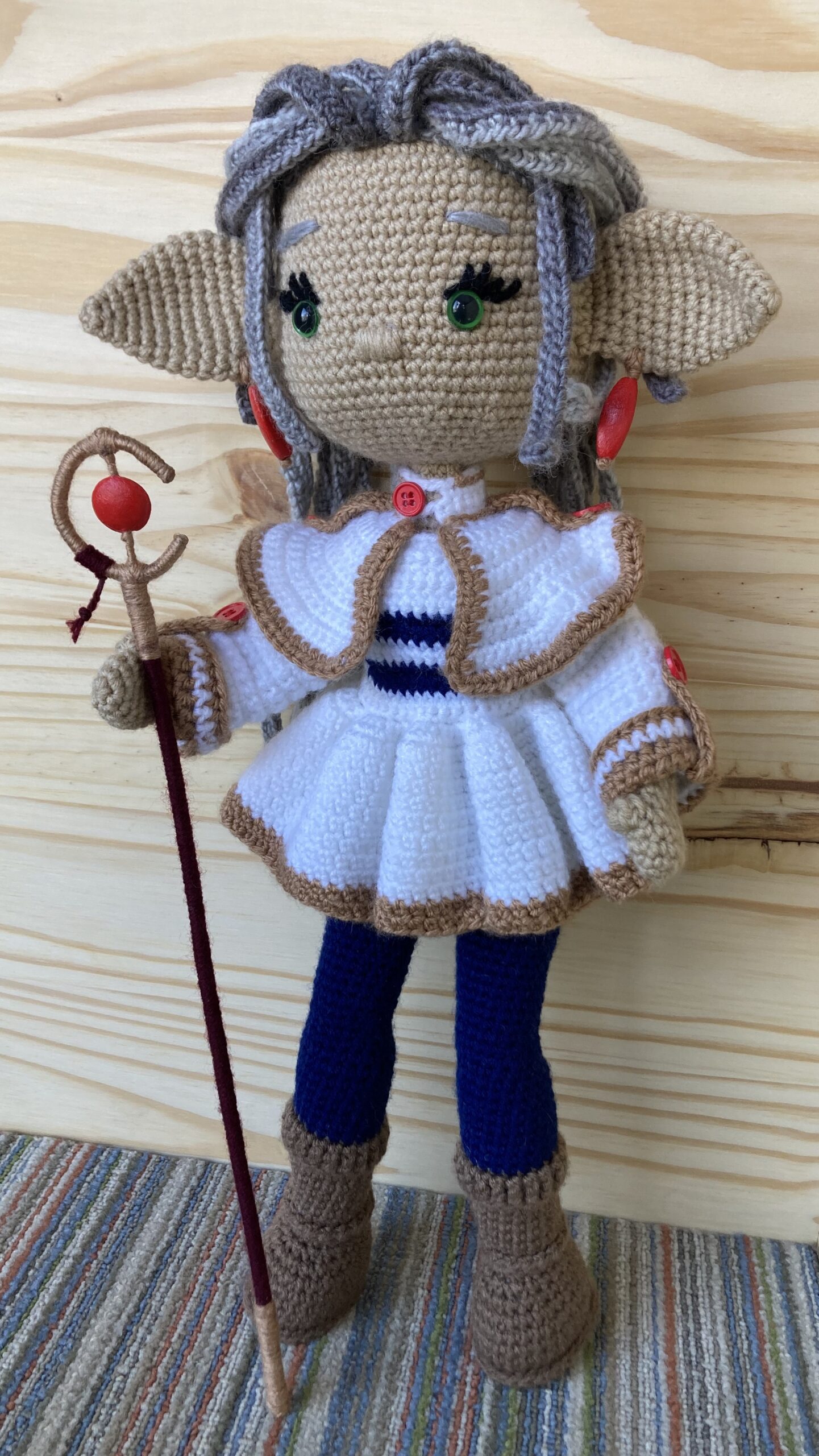 I downloaded a Frieren pattern from AmiCute Creations. It turned out bigger than expected, took about 23 hours to make, and I learned a few new crochet techniques.